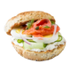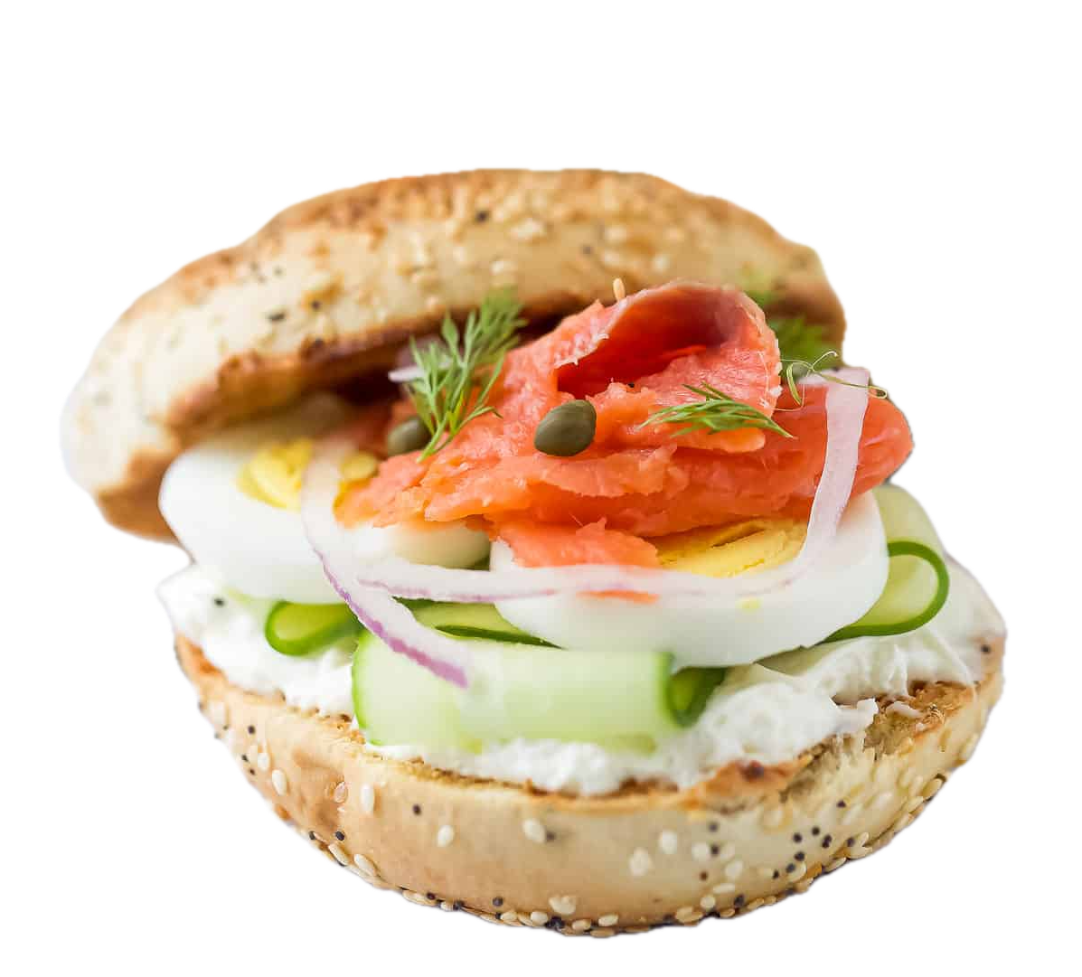 Toasted bagel. Comes with smoked salmon, capers, cream cheese, thinly sliced red onion, and tomato slices.