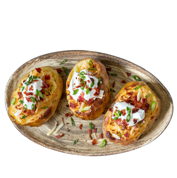 Your choice of Hash browns or red potatos with onions, bacon, Cheddar cheese, and green peppers.
