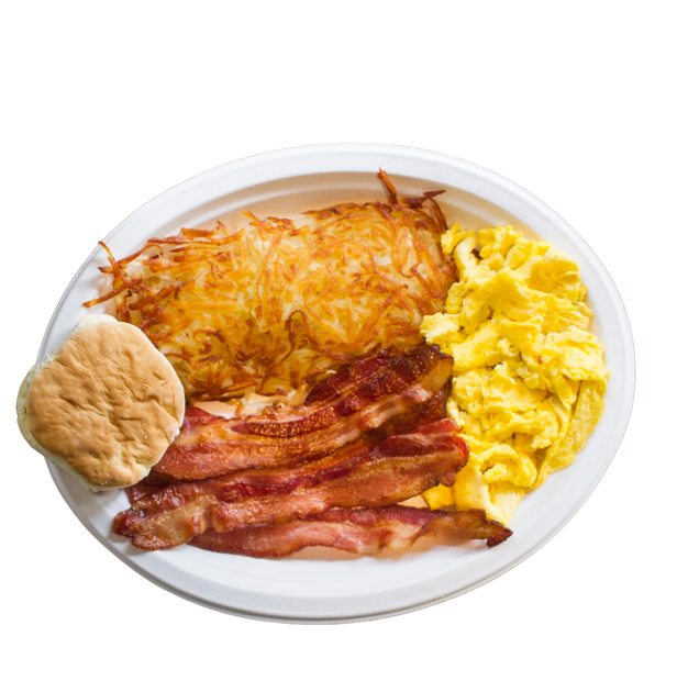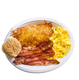 Two eggs any style, hash browns, and toast. Your choice of bacon, turkey bacon, sausage links or patty.