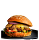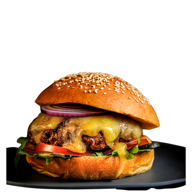 Burger patty with grilled onions and swiss cheese on grilled rye.